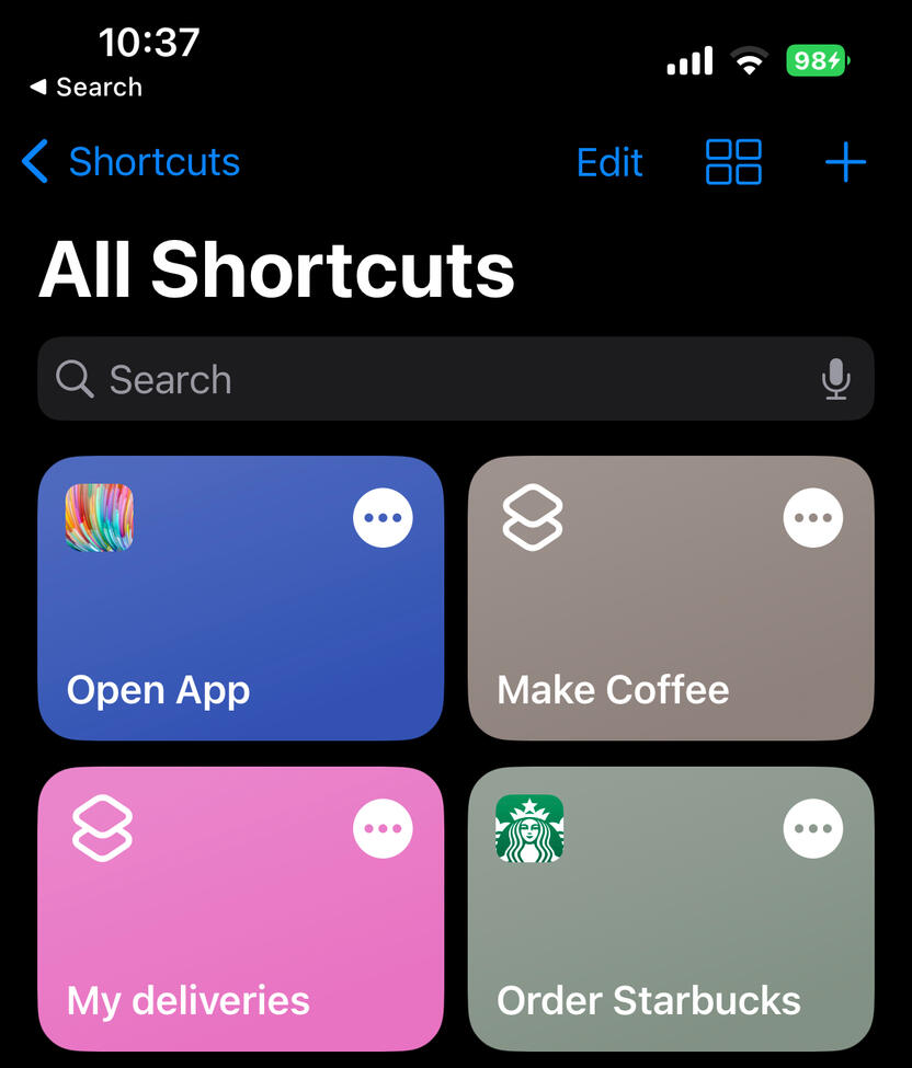 Note the name of the shortcut you want to use in for your Top Four action. In this case we'll be using Make Coffee